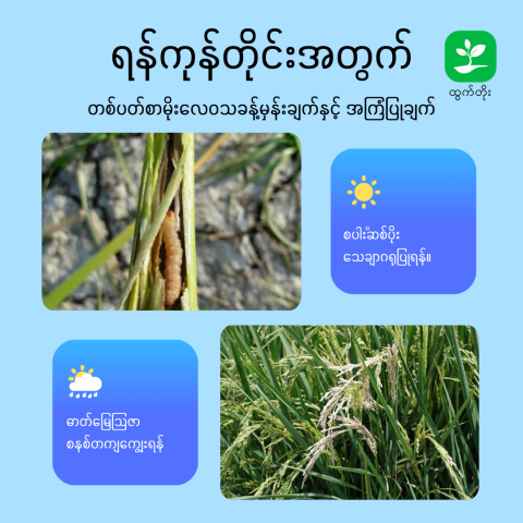 စိုက်ပျိုးရေးနှင့် ပတ်သတ်သော အခက်အခဲများကို တိုင်ပင်ဆွေးနွေး အကြံဥာဏ်ရယူလိုပါက ထွက်တိုး တောင်သူအကြံပေးဖုန်း- ၀၉၉၇၇၉၁၀၀၀၀ ကို ဆက်သွယ်နိုင်ပါတယ် သို့မဟုတ် ထွက်တိုးကို follow, Like, Share နှင့် Download လုပ်ထားပြီး -https://htwettoe.com/download ထွက်တိုးမေးဖြေကဏ္ဍတွင် ဝင်ရောက်မေးမြန်းနိုင်ပါကြောင်း သတင်းကောင်းပါလိုက်ပါတယ်။