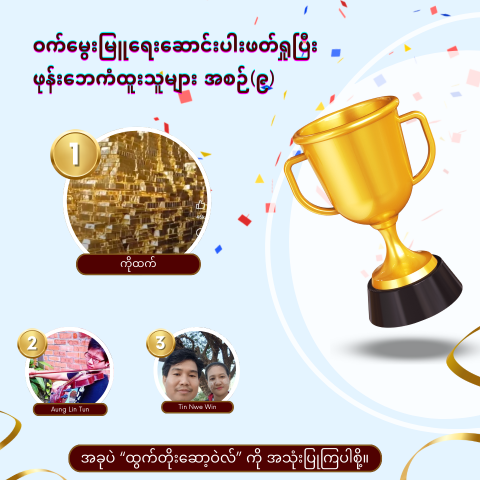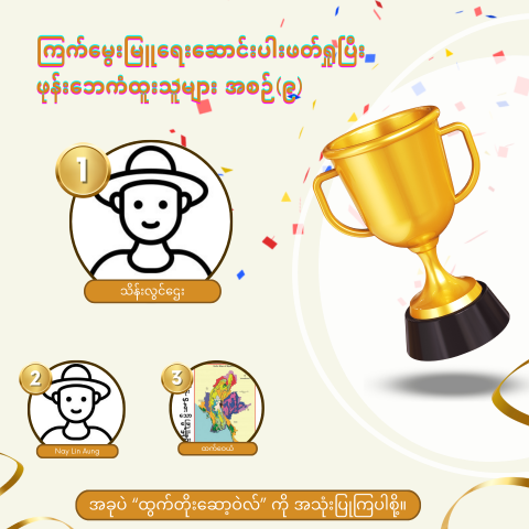 3️⃣ တတိယဆု – ၅,၀၀၀ ကျပ် စီ ချီးမြှင့်ပေးမည်ဖြစ်သည်။