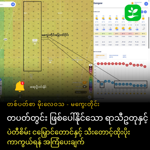 ·          ယခုရက်သတ္တပတ်အတွင်းမှာ မကွေးတိုင်းအတွင်း မိုးရွာရန်မရှိပါ။