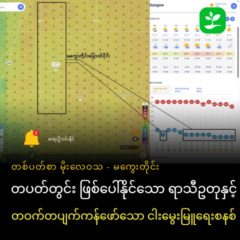 · ယခုရက်သတ္တပတ်အတွင်းမှာ မကွေးတိုင်းအတွင်း မိုးရွာရန်မရှိပါ။