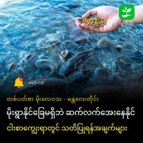 - အစာအကြွင်းအကျန်များမယ်ဆိုရင် အပင်မျှော(Phytoplankton) ပေါက်ပွားမှုများလာခြင်း၊ အစာအကြွင်းအကျန်များ ပုပ်ပွပျက်စီးပြီး အမိုးနီးယား (Ammonia) ထွက်ခြင်းနှင့် ညအချိန်တွင်ငါးကန်ရေမှာပျော်ဝင်နေသောအောက်စီဂျင် (Dissolved Oxygen)သည် လုံလောက်သော ပမာဏတွင်မရှိတော့သောကြောင့် Oxygenကျခြင်း စသည်တို့ကိုဖြစ်ပေါ်စေနိုင်ပြီး ကန်ထဲရှိ ငါးများ သေဆုံးတာမျိုး ဖြစ်တတ်ပါတယ်။