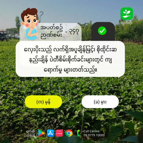 ဒါကြောင့် ဒီတစ်ပတ်ဉာဏ်စမ်းမေးခွန်းရဲ့အဖြေမှန်က (က) မှန် ဖြစ်ပါတယ်။