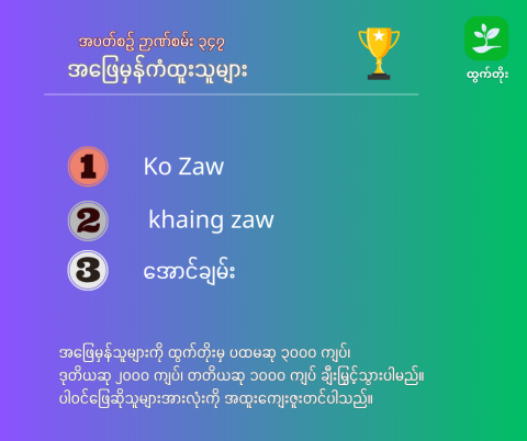 ဉာဏ်စမ်းအဖြေမှန်နှင့်ဖုန်းဘေလ်ကံထူးသူများစာရင်း🤗🤗