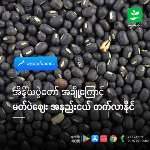 “ပြည်တွင်း မတ်ပဲဝယ်လိုအားက လျော့ကျနေပေမဲ့ ခရစ္စမတ်နဲ့ နှစ်သစ်ကူး အားလပ်ရက်တွေကြောင့် ဈေးငြိမ်ပြီး တင်သွင်းမှုလုပ်ငန်းက အေးနေတယ်။ FOB ဈေးလည်း အပြောင်းအလဲ မရှိသလောက် ငြိမ်နေတယ်။ ဇန်နဝါရီလ ရောက်ရင်တော့ အိန္ဒိယမှာ ပွဲတော်တချို့ ရှိတော့ စျေးအနည်းငယ်တော့ တက်နိုင်ပါတယ်။ အခုအပတ် ၁၇ သိန်းအထပ် ပြန်ရောက်လာတယ်” ဟု ပဲကုန်သည်တစ်ဦးက ပြောသည်။