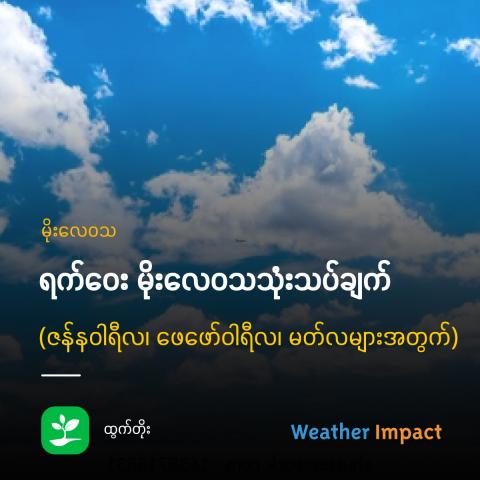 ဇန်နဝါရီ၊ ဖေဖော်ဝါရီ၊ မတ်လတို့တွင် မြန်မာနိုင်ငံတဝှမ်း မိုးရွာနိုင်ခြေ အလွန်နည်းပြီး ရာသီဥတု ဆက်လက်ခြောက်သွေ့နေနိုင်ပါသည်။ အလယ်ပိုင်းနှင့် အထက်ပိုင်းတွင် အပူချိန် သိသိသာသာ မြင့်တက်လာနိုင်ပါသည်။