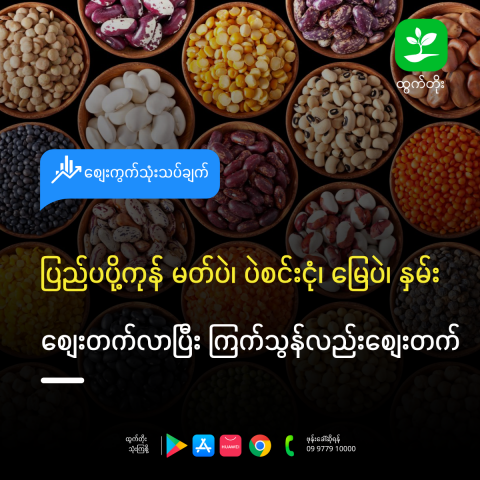 သီးနှံပေါက်စျေးနှင့် တိုင်းဒေသကြီးအလိုက် ပေါက်စျေးကြည့်ရှုလိုပါက_ https://htwettoe.com/market မှာ ကြည့်ရှုနိုင်သလို