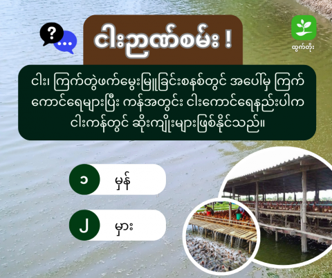အပတ်စဉ် သောကြာနေ့တိုင်း ငါးမွေးမြူရေးဉာဏ်စမ်း ဖြေဆိုရင်း ဗဟုသုတတိုးပွားကြပါစို့။