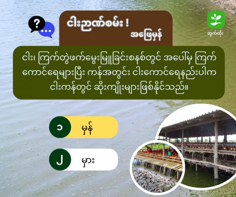ငါးကန် နှင့်ပတ်သတ်သည့် ဥာဏ်စမ်းမေးခွန်းအဖြေမှန်မှာ